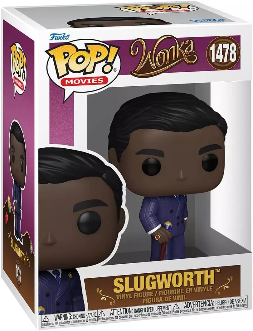 - The Funko Pop! Movies: Wonka - Slugworth Vinyl Figure (#1478) is a collectible based on the character Slugworth from the movie Willy Wonka & the Chocolate Factory (1971).