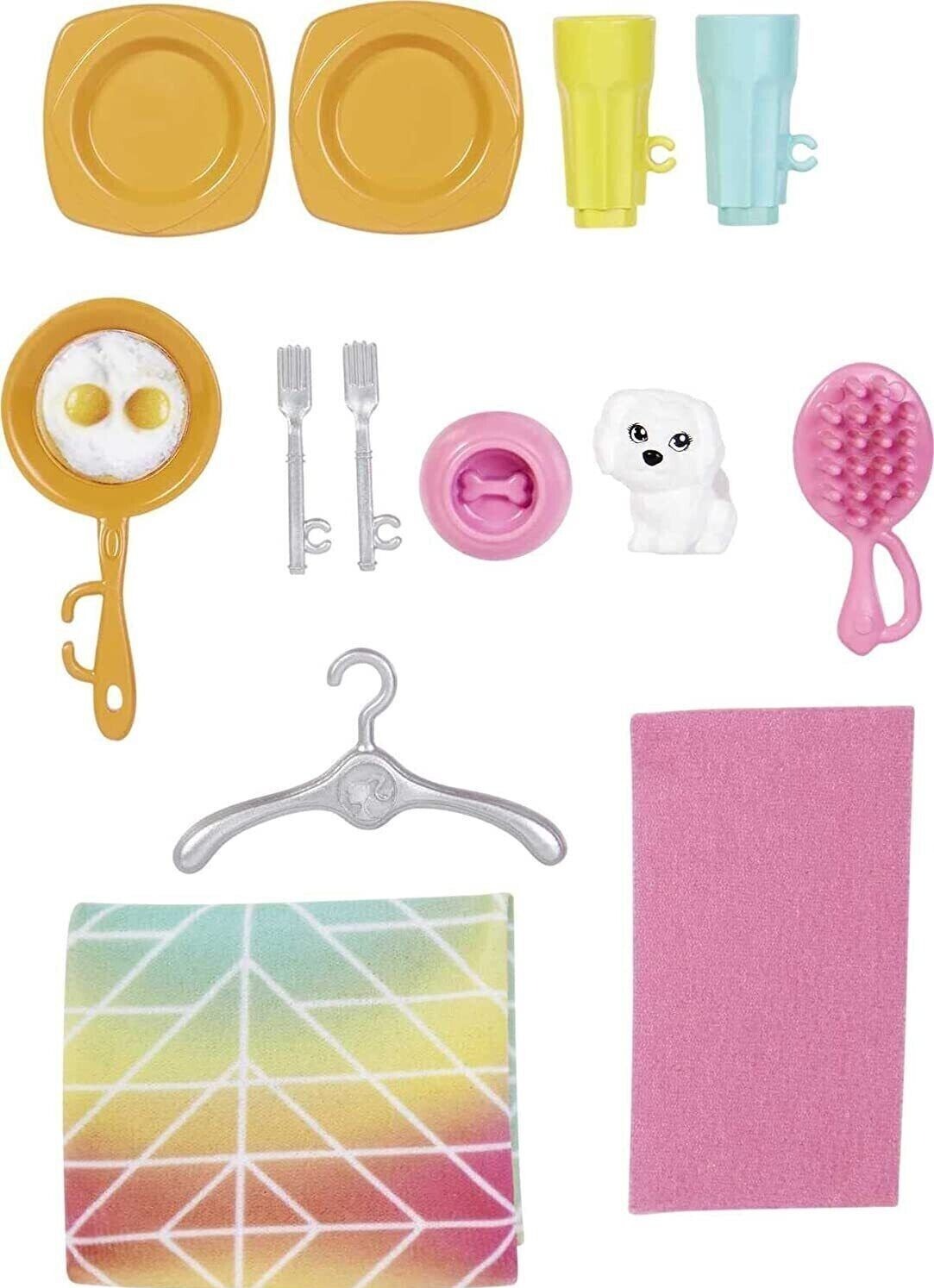 Move right into fun with the Barbie Dollhouse, featuring 2 levels, 4 play areas, and 360-degree play for endless storytelling! This fully furnished home includes a loft bed, kitchen, dining area, and bathroom, all styled with bright colors and signature Barbie flair. Kids can welcome guests at the front door, cook in the kitchen, enjoy meals at the table for two, and tuck Barbie (sold separately) into her cozy loft bed at the end of the day. An adorable pet puppy and plenty of accessories—like chairs, dishes, and a comforter—make play even more delightful. When the adventure is over, the house folds up for easy storage and on-the-go fun.