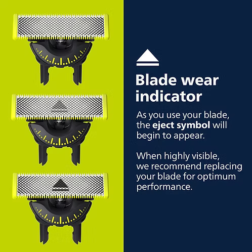- Lames longue durée : La lame en acier inoxydable dure jusqu’à 4 mois*. Un symbole d’éjection apparaît lorsqu’il est temps de la remplacer ! (*Pour une expérience de rasage optimale. Basé sur 2 rasages complets par semaine. Les résultats réels peuvent varier.)