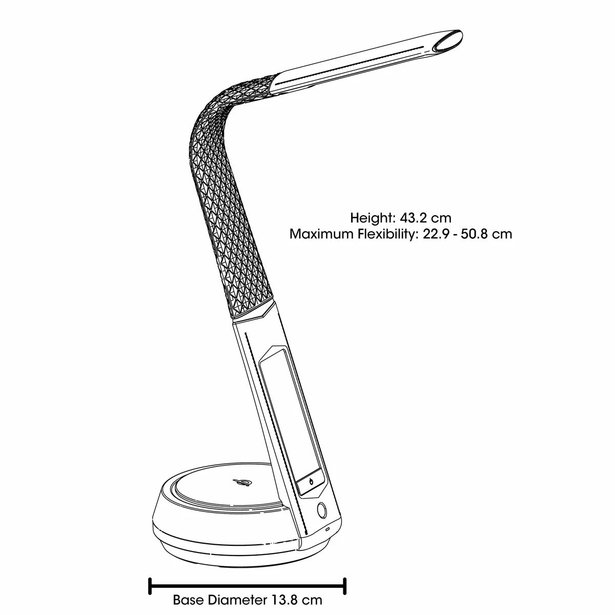 - Le col flexible texturé permet un réglage facile de l'angle de la lumière