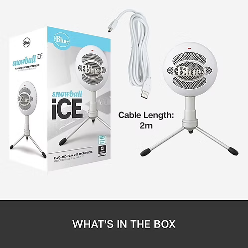 Le Snowball iCE de Blue est la solution la plus rapide et la plus simple pour obtenir un son de haute qualité pour l'enregistrement et le streaming. Sa capsule à condensateur cardioïde sur mesure offre une qualité audio cristalline, bien supérieure à celle du microphone intégré de votre ordinateur. Le trépied ajustable vous permet de positionner le microphone par rapport à la source sonore. Le Snowball iCE est même certifié Skype et Discord pour une performance garantie. Que vous meniez une interview virtuelle via Skype, diffusiez une partie en direct sur Twitch ou communiquiez avec des personnes du monde entier, votre voix sera parfaitement audible. Connexion USB Plug & Play compatible avec tous les logiciels et ordinateurs. Capsule à condensateur personnalisée : Grâce à sa capsule à condensateur personnalisée Blue, le snowball iCE offre une qualité audio cristalline, bien supérieure à celle du microphone intégré de votre ordinateur. Directivité cardioïde : La directivité cardioïde du snowball iCE est idéale pour enregistrer votre voix sur Skype, pour les podcasts, les jeux vidéo et bien plus encore. Design rétro élégant : Son esthétique rétro élégante s'inspire des équipements d'enregistrement classiques et s'intègre parfaitement à votre bureau et à votre caméra. Pied de bureau réglable : Le trépied inclus vous permet de positionner le microphone par rapport à la source sonore, optimisant ainsi la qualité audio. Certifications Skype et Discord : Le snowball iCE est certifié Skype et Discord pour des performances garanties. Que vous meniez des interviews sur Skype, diffusiez des parties en direct sur Twitch ou communiquiez avec le monde entier, votre voix sera claire et forte. Plug & Play sur Mac et PC : Enregistrez et diffusez instantanément sur Mac ou PC. Dimensions : 325 mm (circonférence).