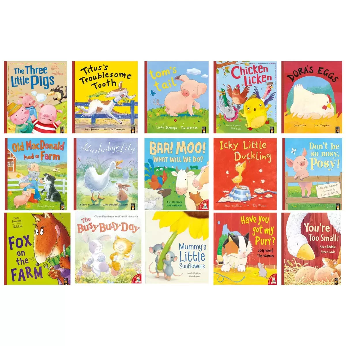 Contient : Les œufs de Dora, As-tu mon ronronnement ?, La ferme du vieux MacDonald, Poulet qui lèche, La queue de Tom, Bêêê ! Meuh ! Que ferons-nous ?, Les trois petits cochons, Ne sois pas si curieuse, Posy !, Le renard à la ferme, Au revoir Lily, La dent gênante de Titus, Tu es trop petit !, Une journée bien remplie, Le petit caneton dégoûtant, Les petits tournesols de maman.