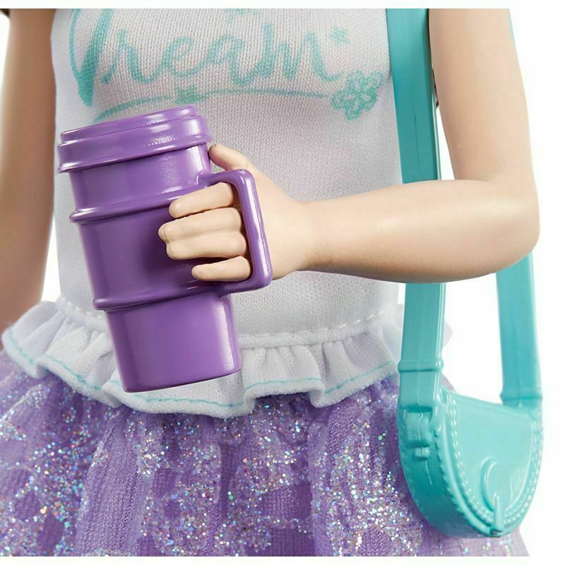 Step into royal adventures with the Barbie Princess Adventure Renee Doll! Dressed in a white “dream” graphic top and a shimmering flared skirt, Renee is ready to explore the kingdom in style. Her blue sneakers keep the look casual and comfy for palace touring, while a pink tiara adds the perfect royal touch. Kids can accessorize her with a chic choker necklace, purse, travel mug, and smartphone for endless storytelling fun. Inspired by Barbie Princess Adventure, this doll invites young dreamers to imagine magical journeys filled with friendship and adventure.