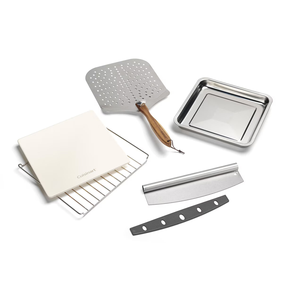 - Complete pizza kit included- Large pizza stone for crispy crusts, a deep dish pan for specialty pizzas, foldable pizza peel for essential movement in and out of the oven, and pizza cutter.