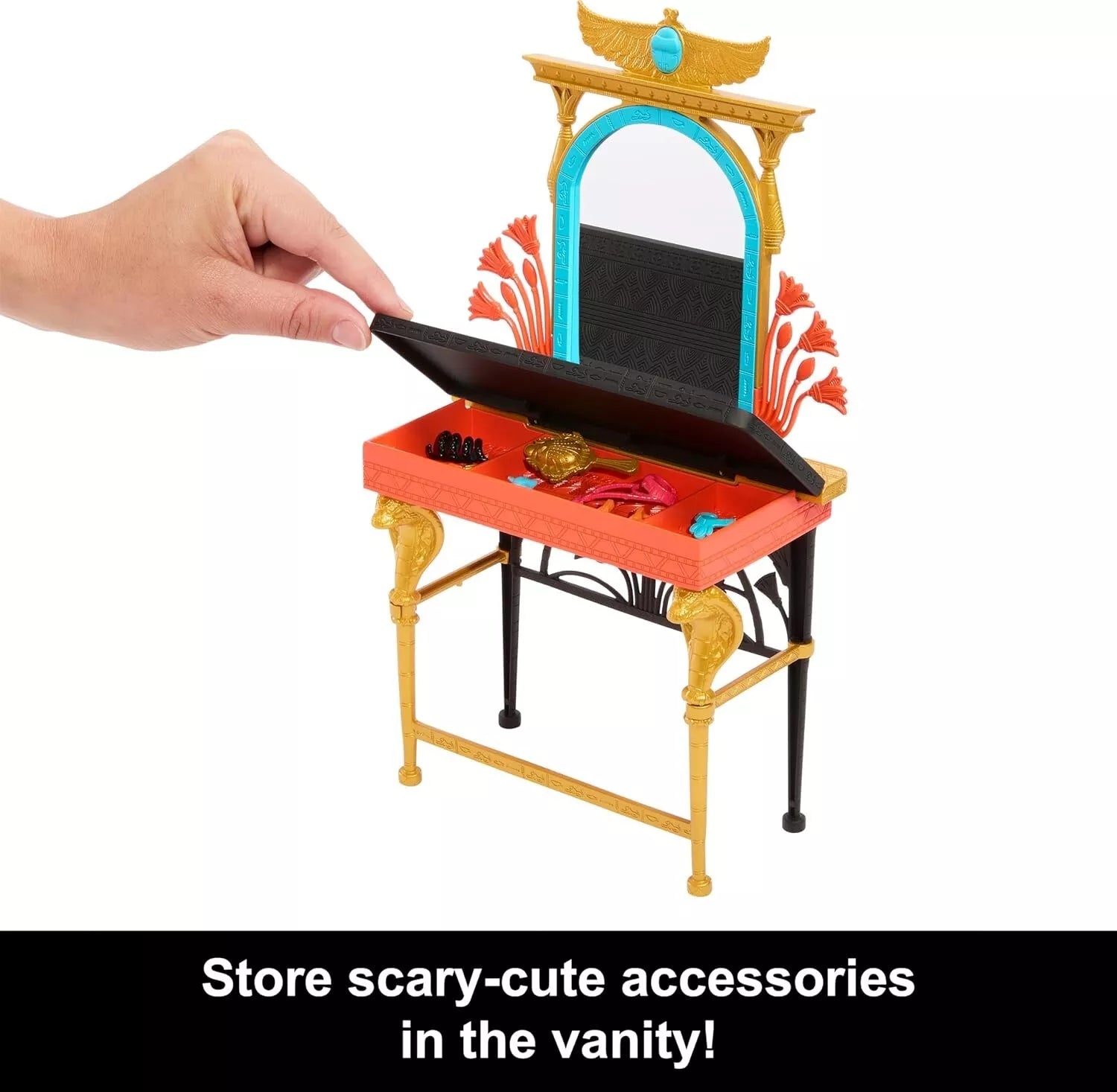 - The playset features a mirror, vanity, and beauty accessories, allowing for plenty of imaginative role-play as Cleo gets ready for her "self-scare" day.